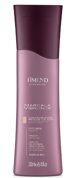 Condicionador Amend Expertise Marsala Vibrance condiciona, revigora e intensifica o tom Marsala dos cabelos. Com fórmula enriquecida com Tâmara da Índia que auxilia no combate à oxidação dos fios (ação anti-aging), promove hidratação profunda e efeito anti-frizz. Brilho intenso com a cor protegida por mais tempo.