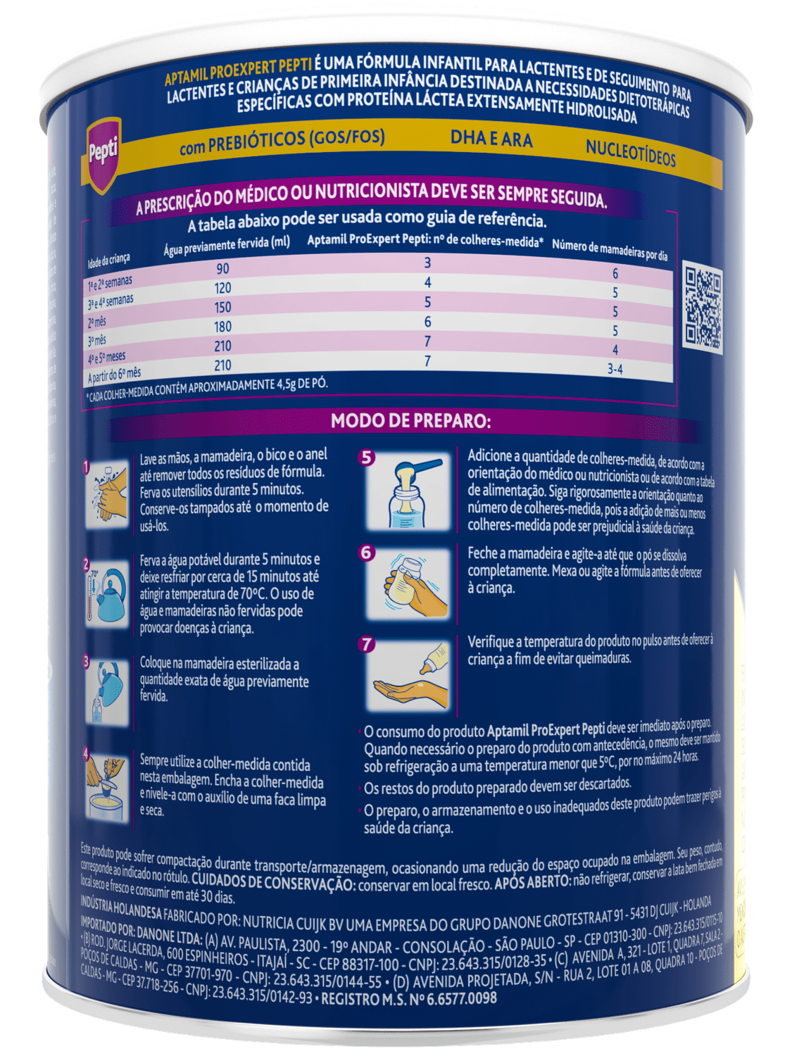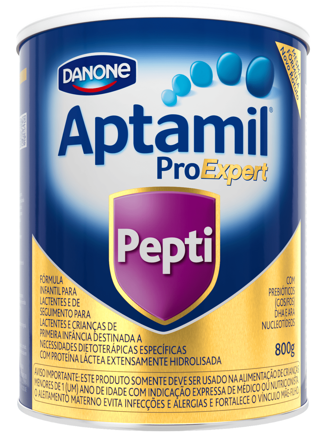 Aptamil pepti é uma fórmula infantil para lactentes e de seguimento para lactentes e crianças de primeira infância destinada a necessidades dietoterápicas específicas com proteína láctea extensamente hidrolisada, com prebióticos (gos/fos), dha e ara, e nucleotídeos.