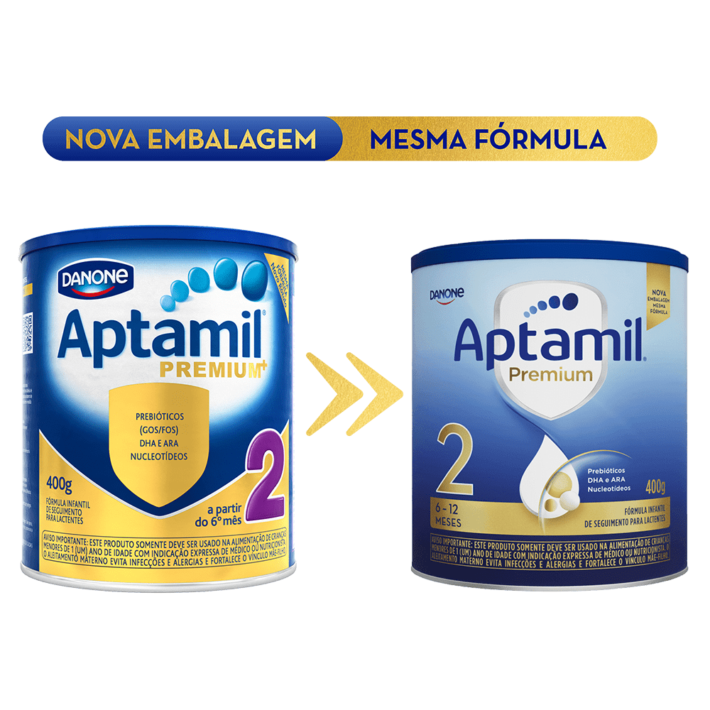 Aptamil premium + 2 é uma fórmula infantil para lactentes a partir do 6º mês de vida com prebióticos (gos/fos), dha e ara, e nucleotídeos.
