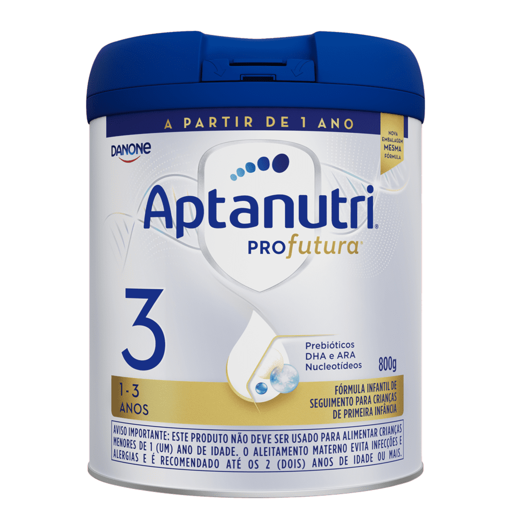 Aptanutri ProFutura 3 é uma fórmula infantil de seguimento para crianças de primeira infância, desenvolvida para as necessidades das crianças brasileiras de 1 a 3 anos. Sua fórmula traz DHA e ARA de duas vezes mais absorção, além de nucleotídeos, taurina e prebióticos (scGOS/lcFOS 9:1).