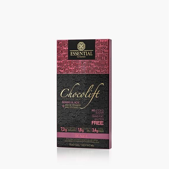Chocolift BE ALIVE é um chocolate gourmet com puro cacau belga e pedacinhos de framboesa, mirtilo, amora e açaí orgânico – deliciosas frutas vermelhas liofilizadas, além da composição já consagrada do Chocolift Essential: whey protein isolado, óleo de coco, fibras prebióticas e adoçantes de baixo índice glicêmico obtidos de fontes naturais. Bonitas e muito apetitosas, as frutas vermelhas são ricas em antocianinas, que participam de diversos processos biológicos no organismo.