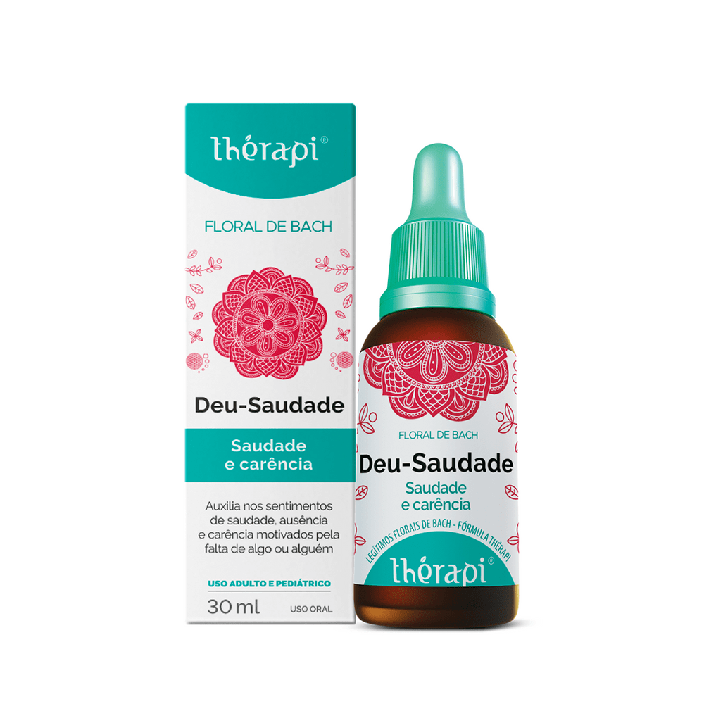 Saudade é um sentimento melancólico devido ao afastamento de uma pessoa, uma coisa ou um lugar, ou à ausência de experiências prazerosas já vividas. Se a criança sente a ausência do pai ou da mãe porque convive pouco com um dos genitores; se a criança sente falta dos coleguinhas no período de férias; se você mora longe de familiares ou amigos queridos e sente muita falta da presença física deles; se você é uma pessoa que não tem conseguido pensar no presente, porque tem saudade de algum momento especial do passado - recente ou distante; se você não consegue se adaptar à nova realidade porque ainda está apegado, por exemplo, a ex-casa, ao ex-emprego, ao ex-relacionamento ou ainda se voltou de um intercâmbio e não consegue se readaptar a nova realidade, o Floral de Bach Thérapi Deu Saudade foi feito para você.