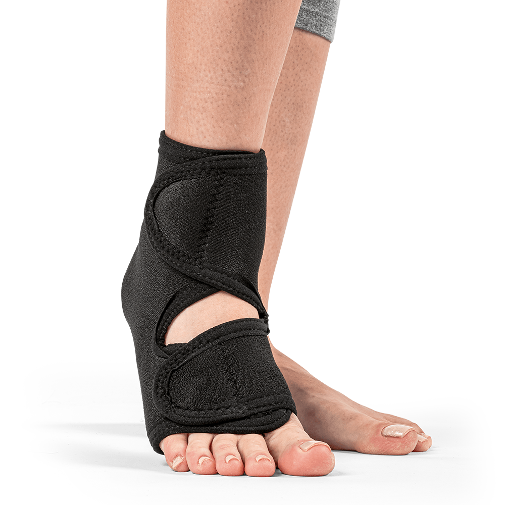 Coloque a órtese de maneira que o orifício fique no calcanhar com as abas para frente. Ajuste o produto através das abas com fecho aderente fechando uma no peito do pé e a outra no tornozelo conforme compressão adequada ao seu conforto.