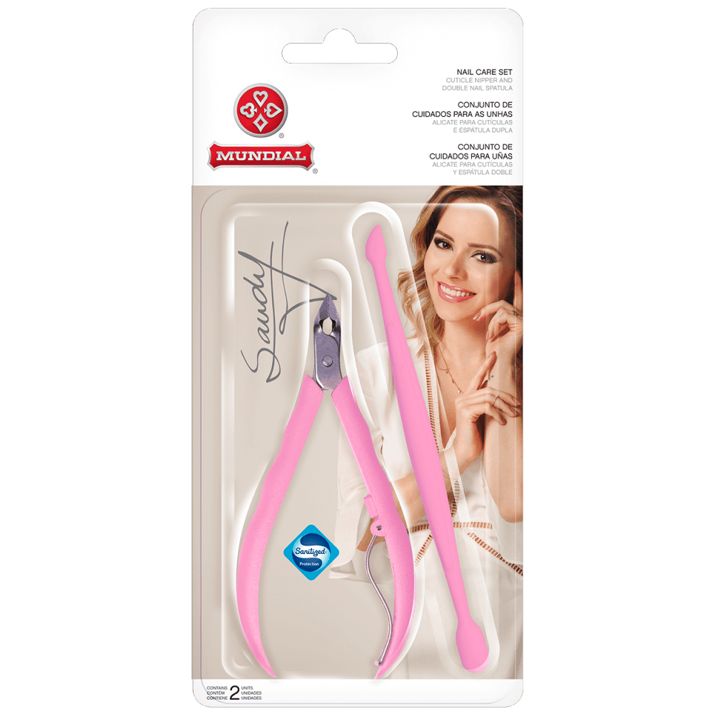 Mundial Alicate Cutícula Plástico Sandy Rosa + Espátula 756