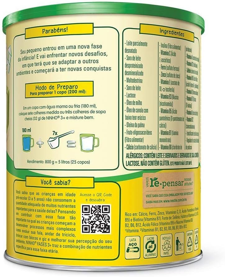 Ninho Fases 3+ Nestlé Composto Lácteo 3 a 5 anos 800g