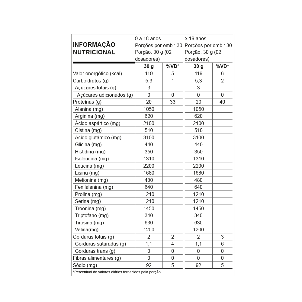 Dilua 30g (2 dosadores) em 200ml de água. Consuma uma porção ao dia ou conforme orientação do nutricionista ou médico. Ideal para ingestão no pós-treino ou sempre que desejar aumentar a ingestão proteica.
