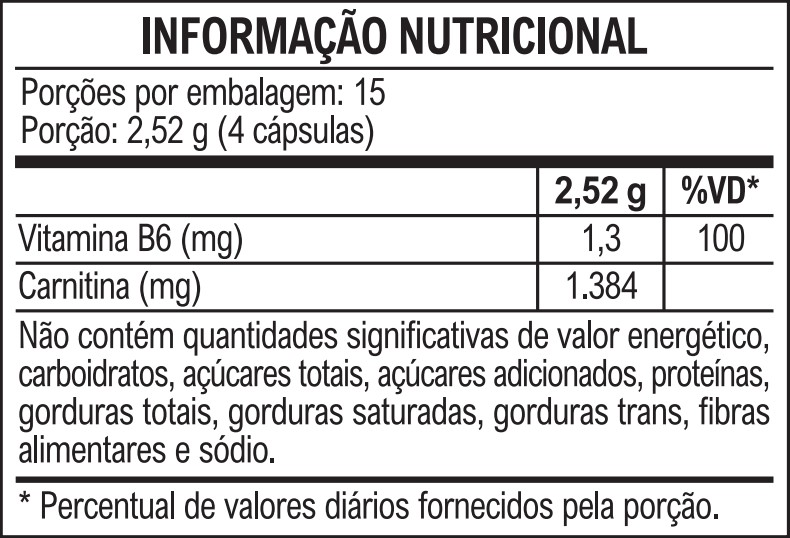 ¹ A vitamina B6 contribui para o metabolismo energético e sistema imunológico; ² A L-Carnitina auxilia no transporte e queima das gorduras; ³ Manter equilíbrio calórico é essencial para redução de gordura corporal.