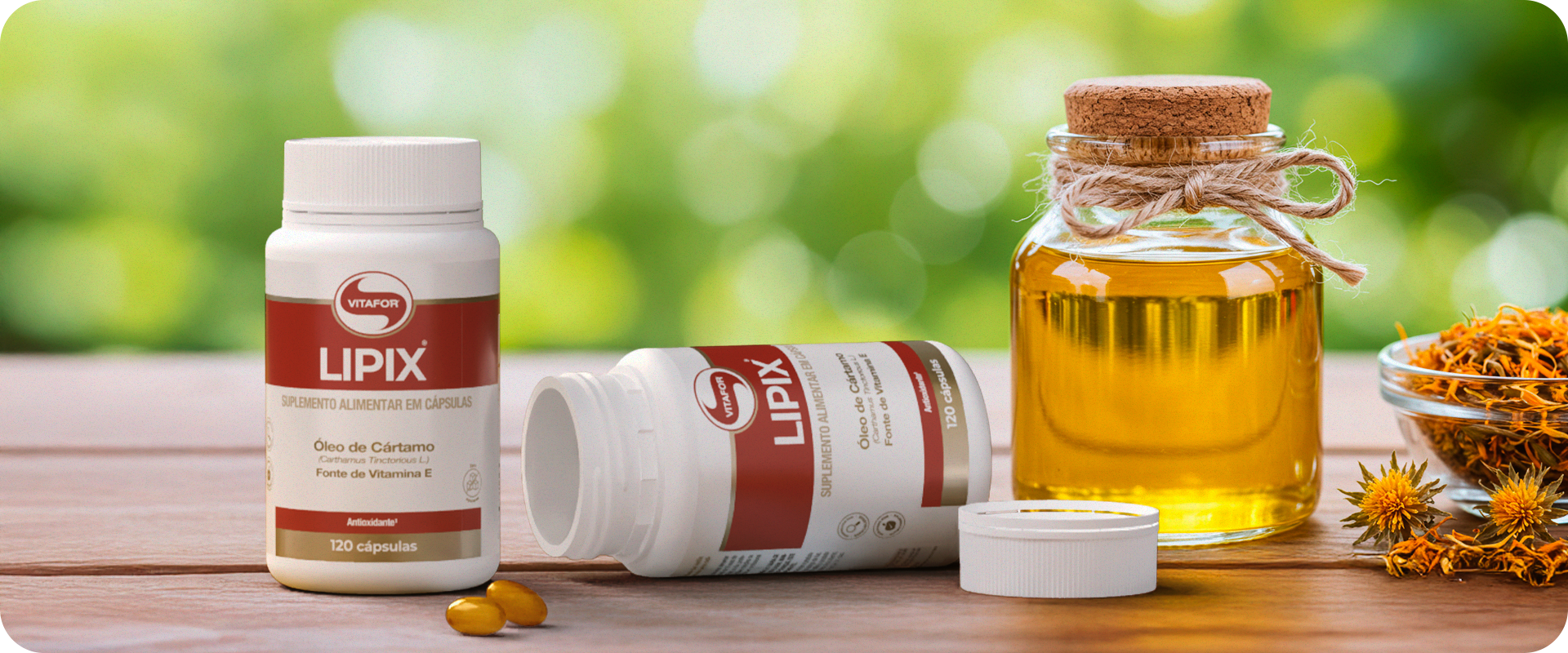Vitafor Lipix com 120 Cápsulas – Suplemento de Óleo de Cártamo com Vitamina E