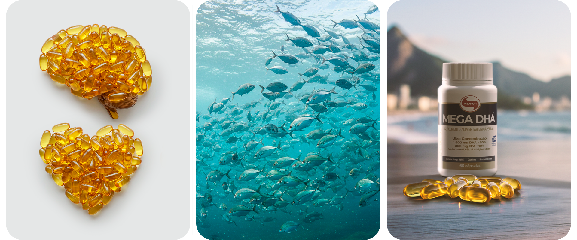 Descubra o poder do Vitafor Mega DHA, um suplemento alimentar premium de óleo de peixe em cápsulas que oferece uma ultra concentração de ômega-3 para cuidar da sua saúde cardiovascular e cognitiva.