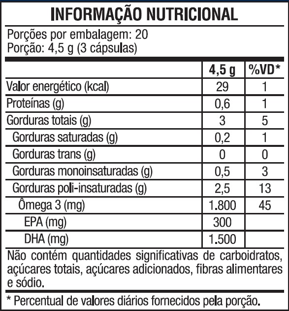 - Fonte de ômega-3 na forma triglicerídeos (TG), garantindo melhor absorção e eficácia no organismo.