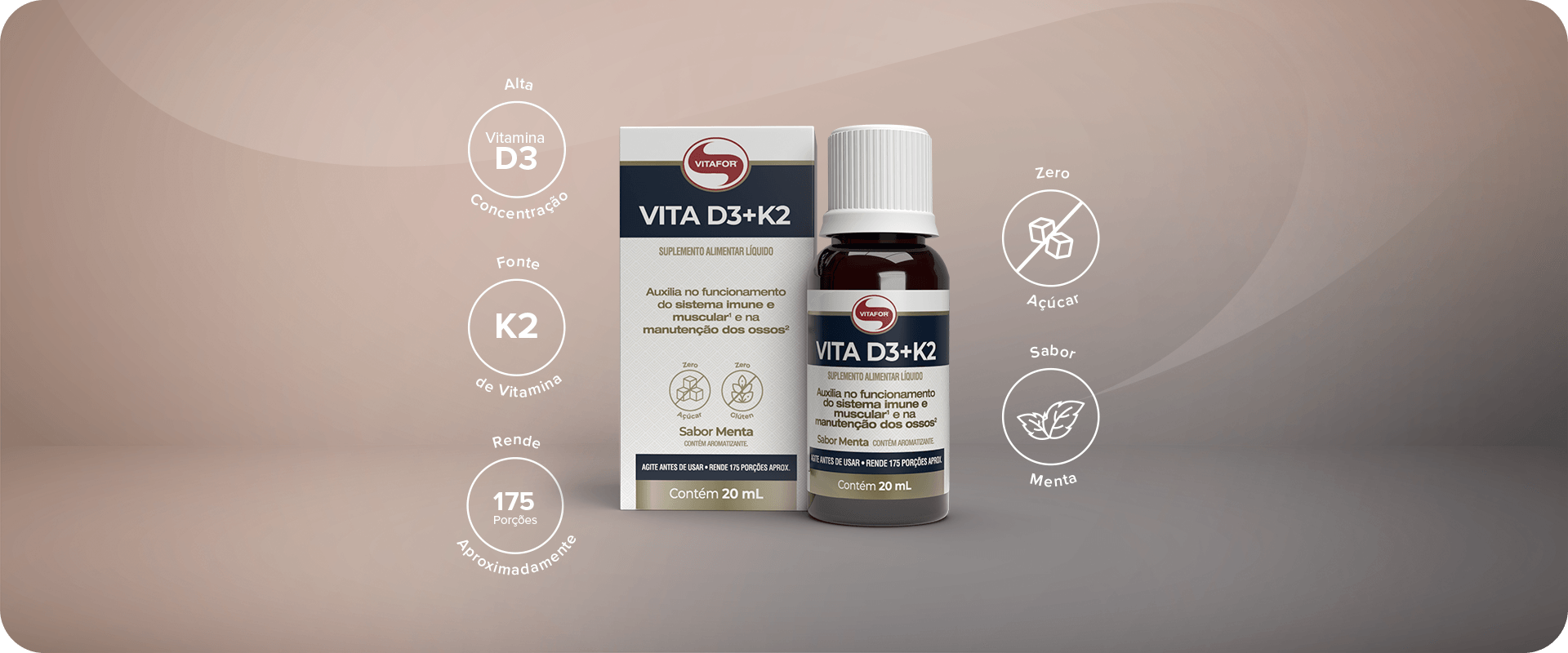 Invista na sua saúde com o Vitafor Vita D3 + K2 Menta Gotas 20ml – a combinação perfeita para ossos mais fortes, músculos saudáveis e um sistema imune protegido. Aproveite a praticidade das gotas e o sabor refrescante de menta para garantir seu bem-estar todos os dias!