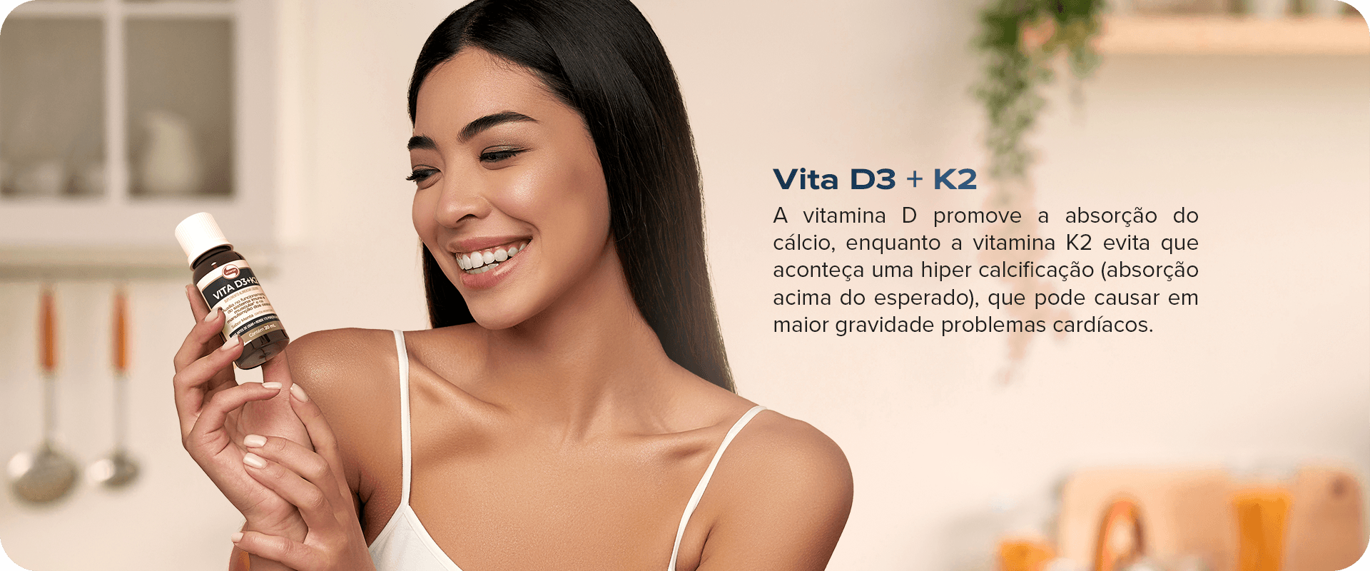 Vitafor Vita D3 + K2® é um suplemento alimentar inovador que combina altas doses de vitamina D3 (colecalciferol) e vitamina K2 (menaquinona-7) em gotas, com sabor refrescante de menta. Com 2.000 UI de vitamina D3 por dose (50 μg), este produto é ideal para quem busca fortalecer os ossos, manter o sistema imunológico ativo e apoiar a saúde muscular de forma prática e personalizada.