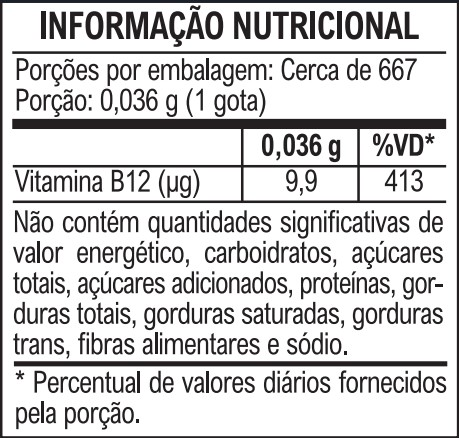 Vitafor Vitamina B12® é a solução ideal para quem busca uma suplementação prática, eficiente e saborosa. Cada gota (0,036 g) contém uma alta concentração de 9,9 mcg de metilcobalamina (vitamina B12), garantindo o suporte que seu corpo precisa para funcionar com energia e vitalidade.
