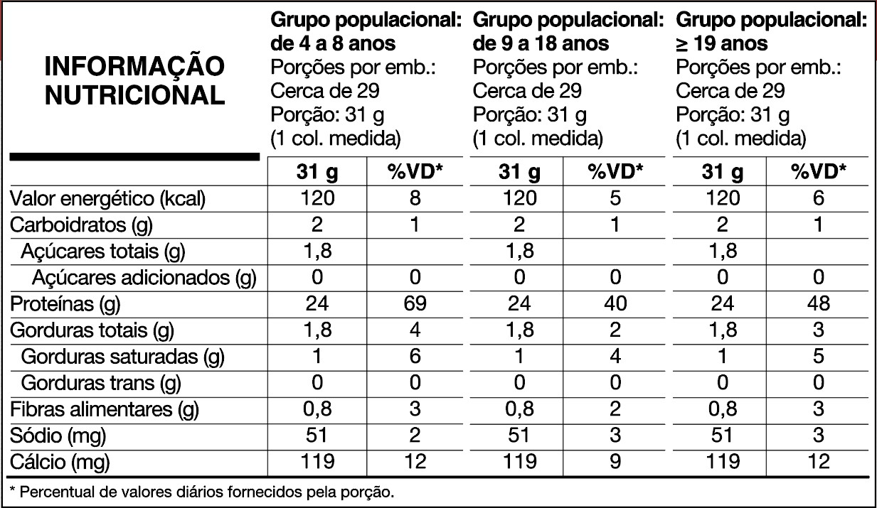 Dissolva 31g (1 colher medida) em 200 a 300 ml de água, leite ou sua bebida favorita. Misture bem até total homogeneização e consuma imediatamente para melhor aproveitamento dos nutrientes.