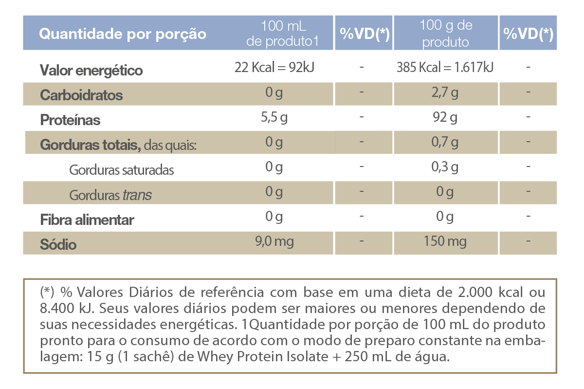 Proteína isolada do soro de leite (Whey Protein Isolate - WPI).